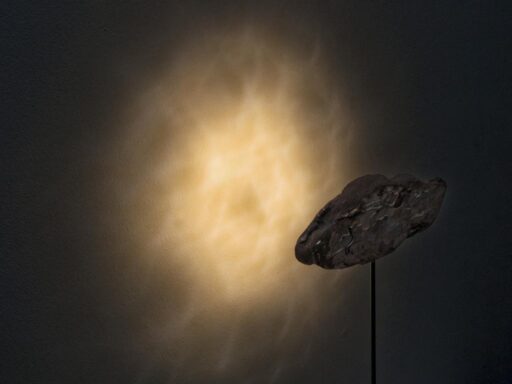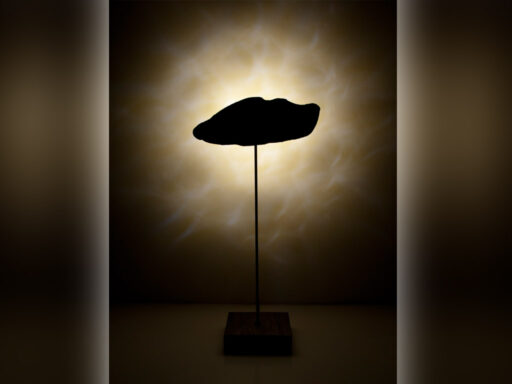 Sfeerlicht boomschors Object & sfeerlicht, voor overdag en ’s avonds. Boomschors (drijfhout uit de Maas), hardhout (drijfhout uit de Maas), aluminium. De (led)lichtbron is speciaal voor dit object ontworpen.